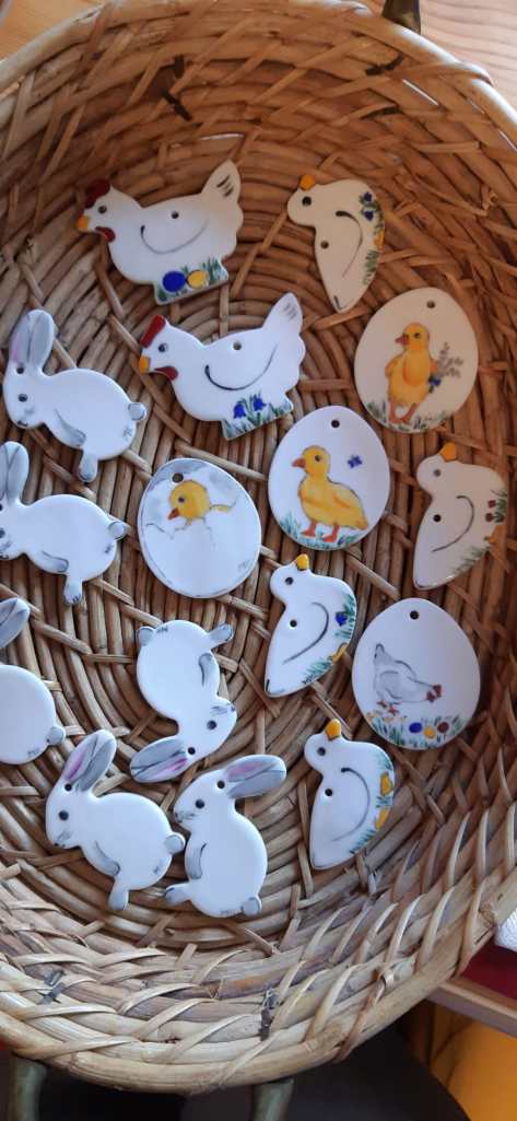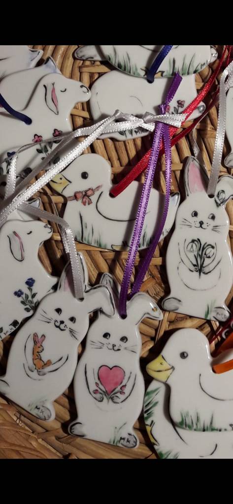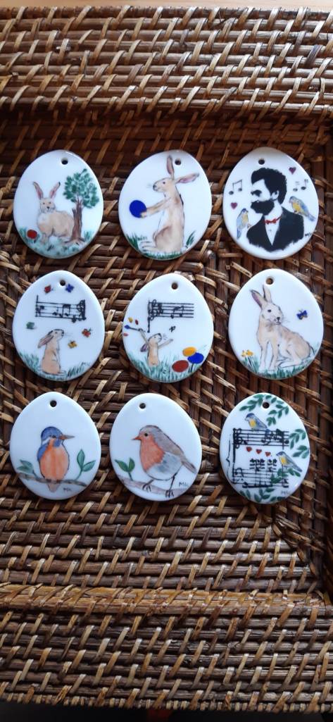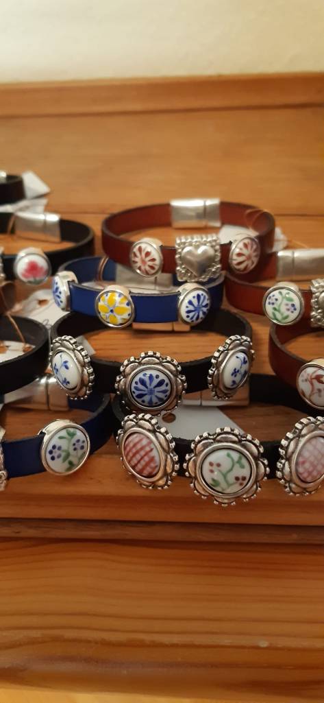 Zur Zeit beschäftige ich mich mit Porzellanbrennen und Aufglasurmalerei, Knöpfe, Lederarmbänder und Nadelfilzen.